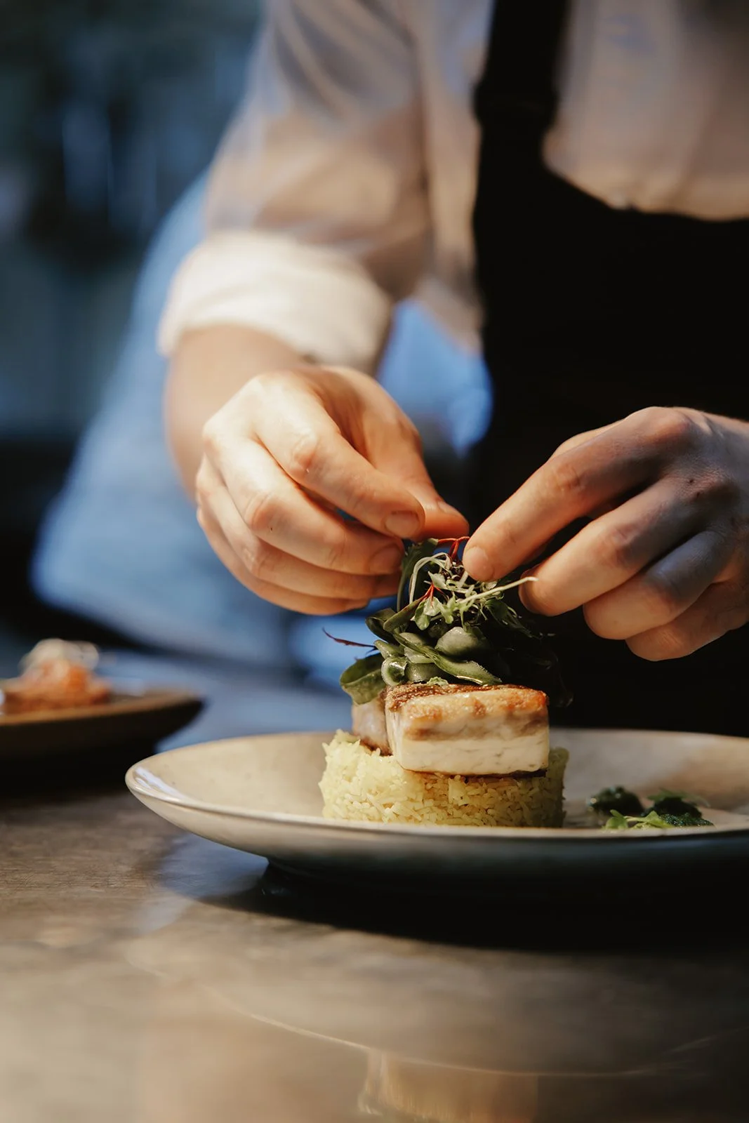 Grilled Barramundi served on Barley Salad with Mojo Rojo